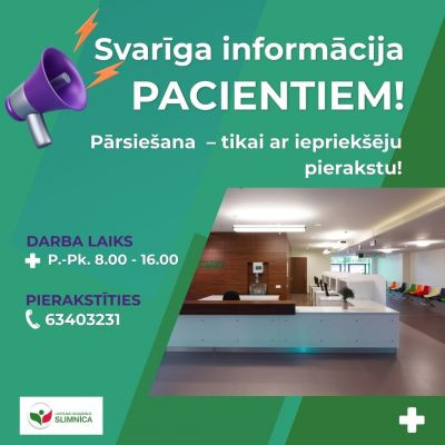 Atgādinām, ka Liepājas Reģionālās slimnīcas Ambulatorās veselības aprūpes daļas reģistratūrā veiksmīgi darbojas mūsdienīga rindu vadības sistēma, kas pacientiem ļauj iestāties rindā arī attālināti – ar viedtālruņa palīdzību, vēl tikai dodoties uz slimnīcu (~5 km rādiusā no slimnīcas ). Tas sniedz iespēju būtiski samazināt gaidīšanas laiku klātienē un ērtāk plānot savu dienu.