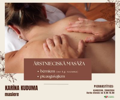 Ārstnieciskā masāža bērniem un pieaugušajiem – arī ar ģimenes ārsta nosūtījumu
